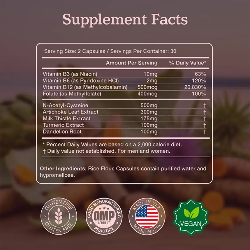 Daily Support: Take 2 capsules daily with meals to help support natural detoxification and promote liver health.